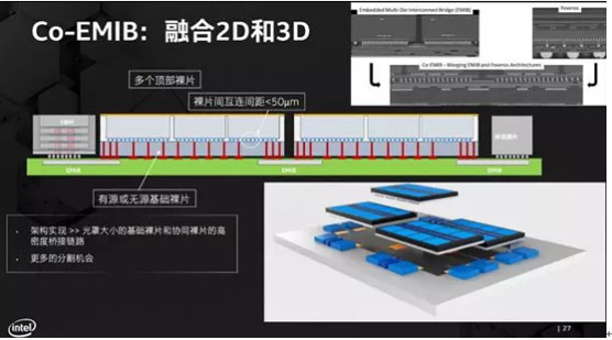 另一方面,不同的封裝技術也并不互相排斥,甚至可以針對性地組合在一起,應對新型需求,就像Co-EMIB就是EMIB、Foveros融合的產物一樣。