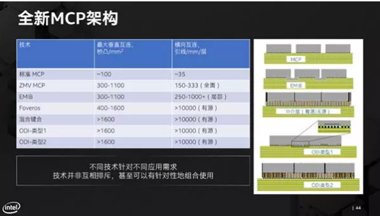 高度重視先進封裝技術的Intel,也不斷拿出新的多芯片封裝(MCP)成果,從前年的EMIB到年初提出的Foveros,再到近期集中爆發的Co-EMIB、ODI、MDIO,與先進的制程工藝相結合,都是芯片架構設計師的最強有力后盾,也為芯片未來差異化演進奠定了堅實的基礎。